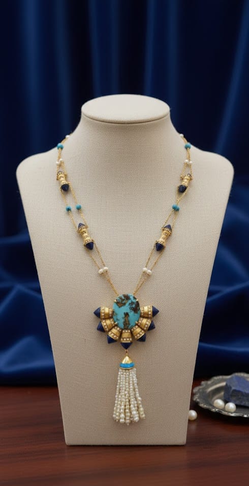 The Bahraini Hollow Moonrise Necklace from Sohan Jewellers captures the ethereal beauty of Bahrain’s desert moonrises. Featuring a delicately crafted hollow crescent pendant, this exquisite piece symbolizes the serene transition from day to night over the tranquil dunes. Meticulously handcrafted, the necklace embodies elegance and cultural richness, making it a timeless addition to any jewelry collection.