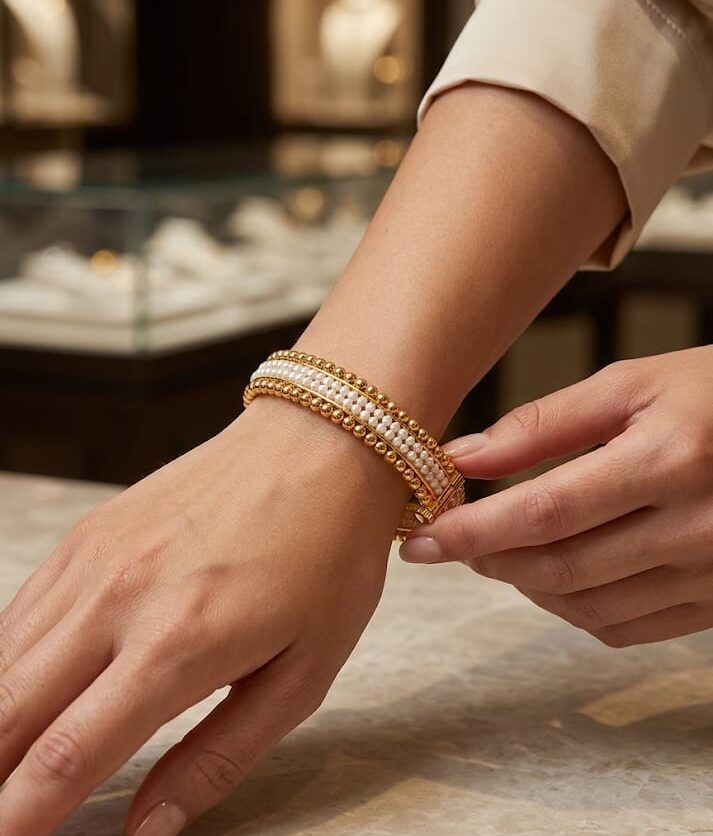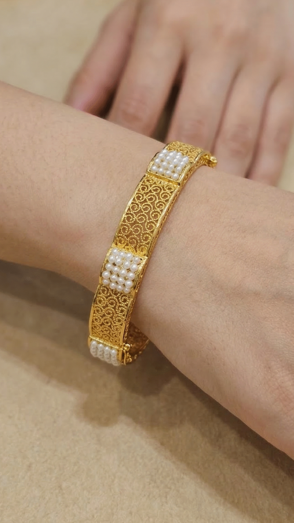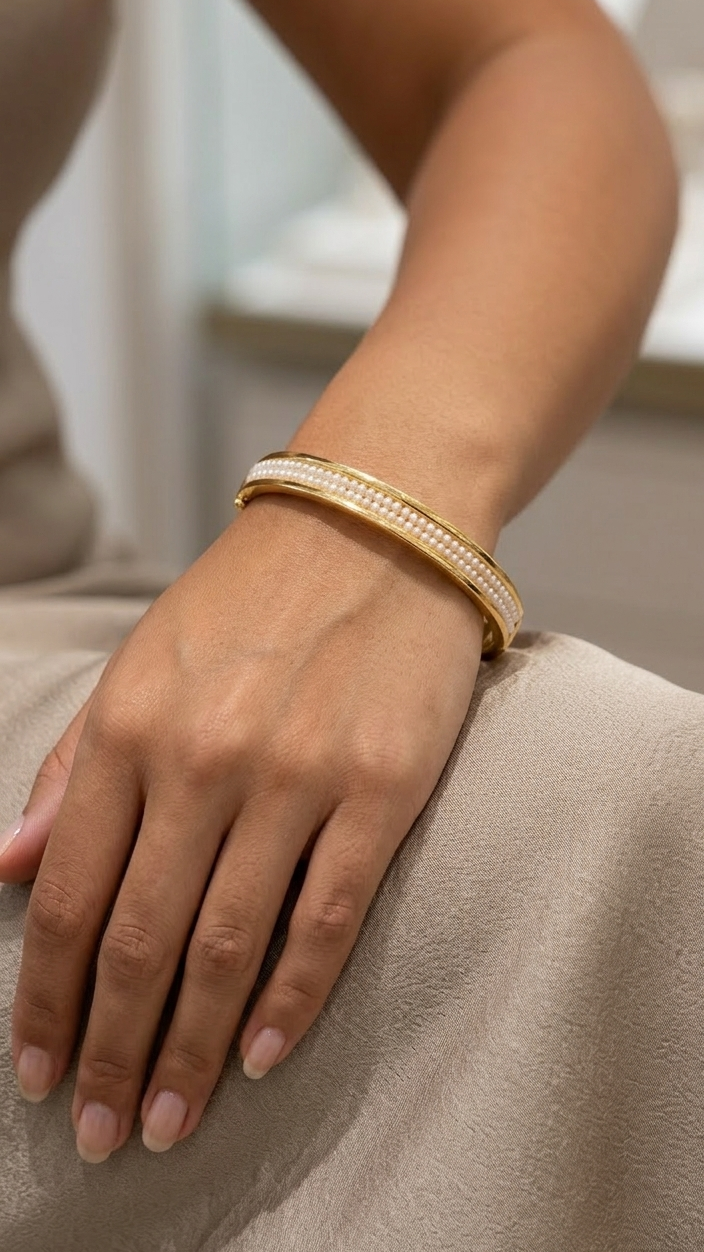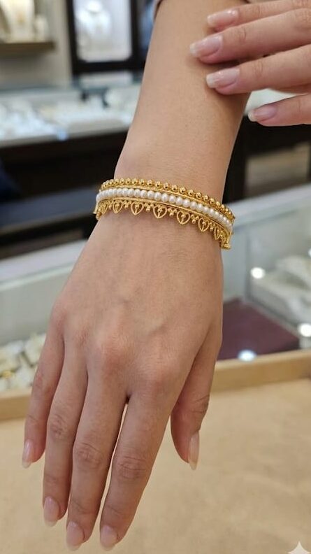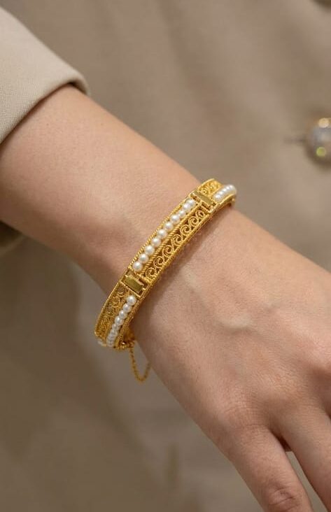 21-karat gold bangle with natural Bahraini pearls