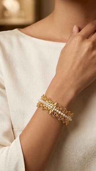 21-karat gold bracelet with natural Bahraini pearls