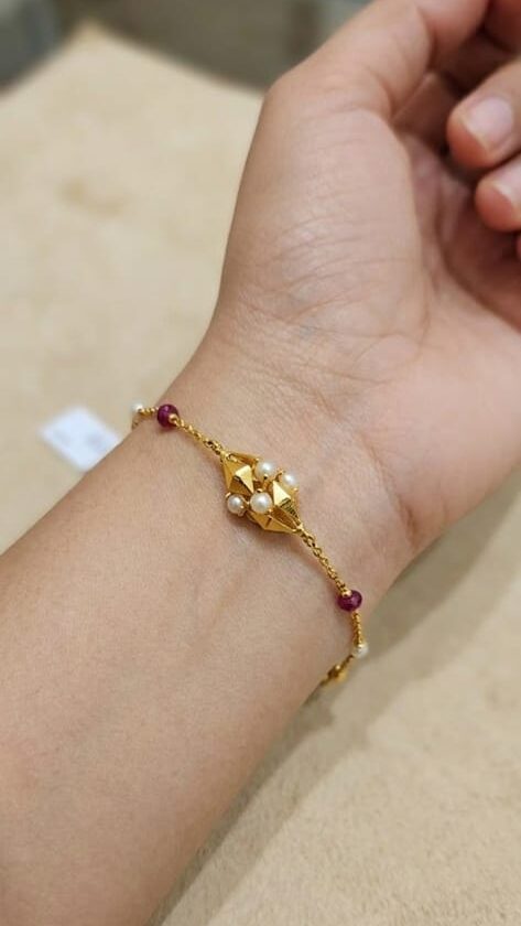 21-karat gold bracelet with natural Bahraini pearls and rubies